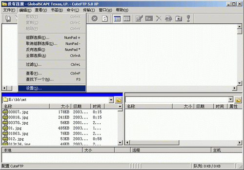 Cute FTP3.5中文版:FTP—设置—选项—防火墙,“PASV方式(A)”前复选框中的打勾去掉。